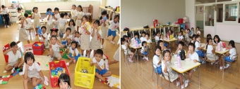1.時 間 月~金曜日 午後2時30分から午後6時まで 半日保育の日 午前11時30分から午後6時まで 2.費 用 一日500円 ※時間は何時まででも金額は同じです。 3.降 園 幼稚園からの帰りの送りはありませんので、午後6時までに幼稚園までお迎えをお願いします。 4.その他 ◎園行事の関係でやらない日も有ります。(運動会・おゆうぎ会等) ◎半日保育の日にぞうさんクラブをやる場合にはお弁当を持参して下さい。 ◎夏休み、冬休み、春休み中もあります。希望により給食も頼めます。 (時間:午前8時~午後6時) ただし、お盆、年末年始等はお休みとなります。 ◎土・日曜日はお休みです。 ◎費用は500円×日数で計算してまとめて翌月に徴収します。 ◎園長の管理の下、預かり保育専任教諭及び補助教諭が担当します。 |