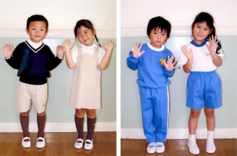 体操着は鮮やかなブルーを基調に夏用冬用共に動きやすくできています。子ども達の個性を大切にしながら、トータルコーディネイトの中から生まれたアメリカンテイストいっぱいの制服です。